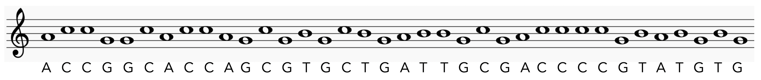 For the main theme of the piece, a short DNA fragment corresponding to the gold nanoparticle-synthesizing 12-mer peptide that I discovered during my M.S. program was chosen.