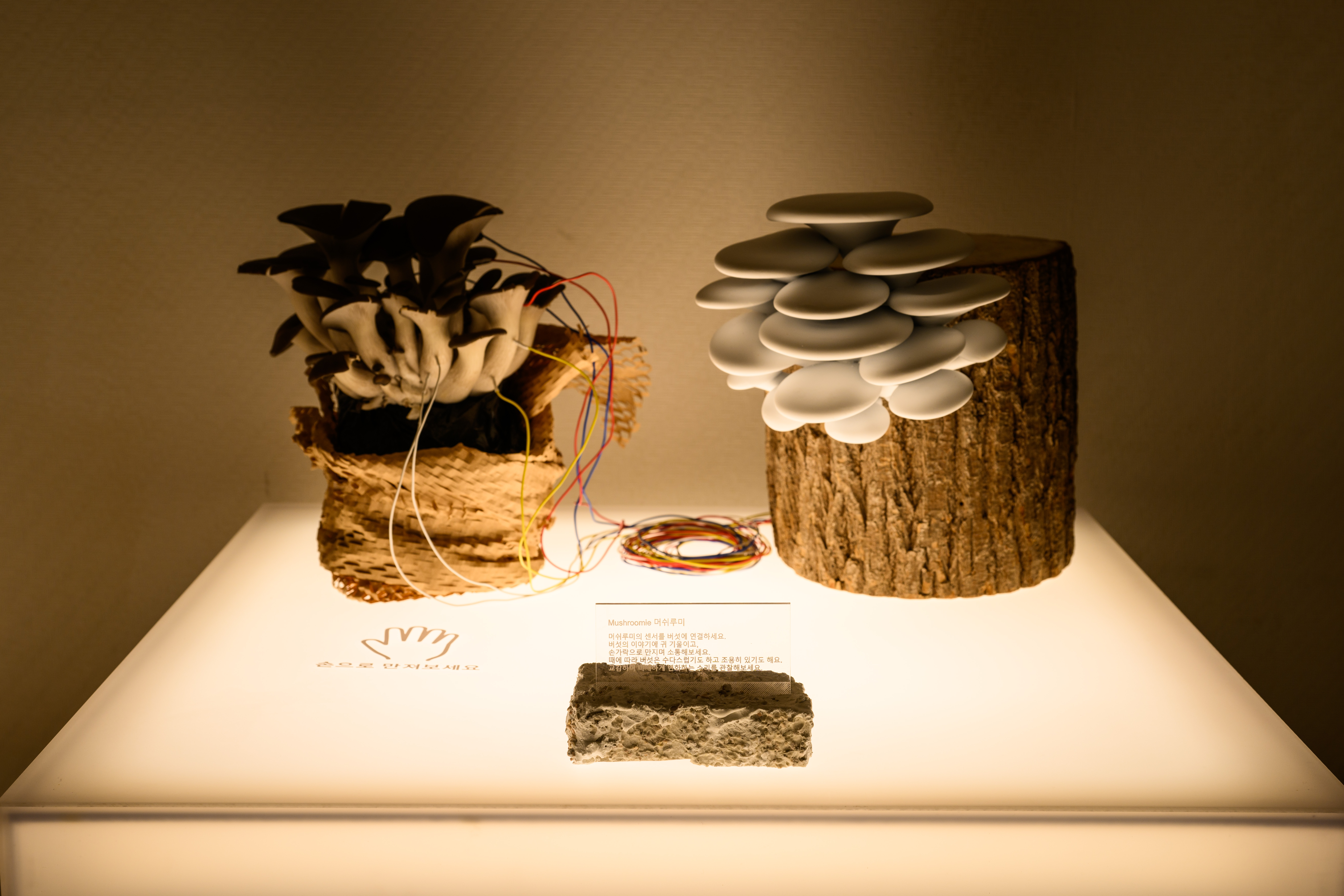 Looking back, when talking about the hidden connections with the surrounding environment, the connection between humans and microbes was something easily overlooked or even unimaginable. Although invisible to the eye, is there not a way to sense the connection with microbes that are deeply related to our bodies and lives? Through this effort, the aim is to shed light on the hidden connections from a microscopic perspective, emphasizing that everything is interconnected in multiple dimensions. In this work titled <Microscopic Sense of Connection>, mushrooms are proposed as companion organisms, presenting a device (Mushroomie) in product form that allows communication with them as an exhibition piece. Additionally, having learned through Mushroomie that the befriended oyster mushroom Pleu wants to perform music, a performance work is presented where Pleu takes the stage along with the artist.