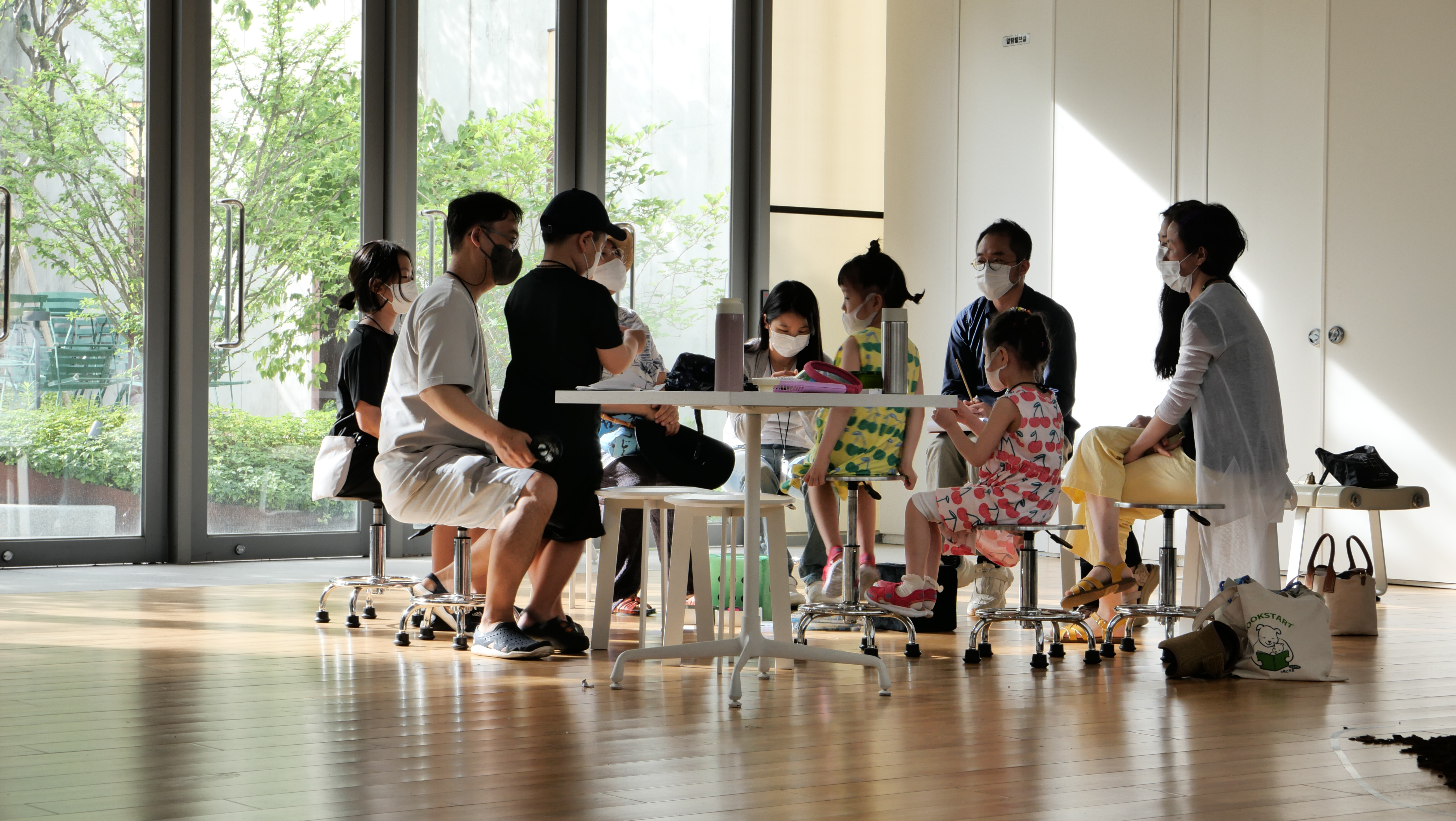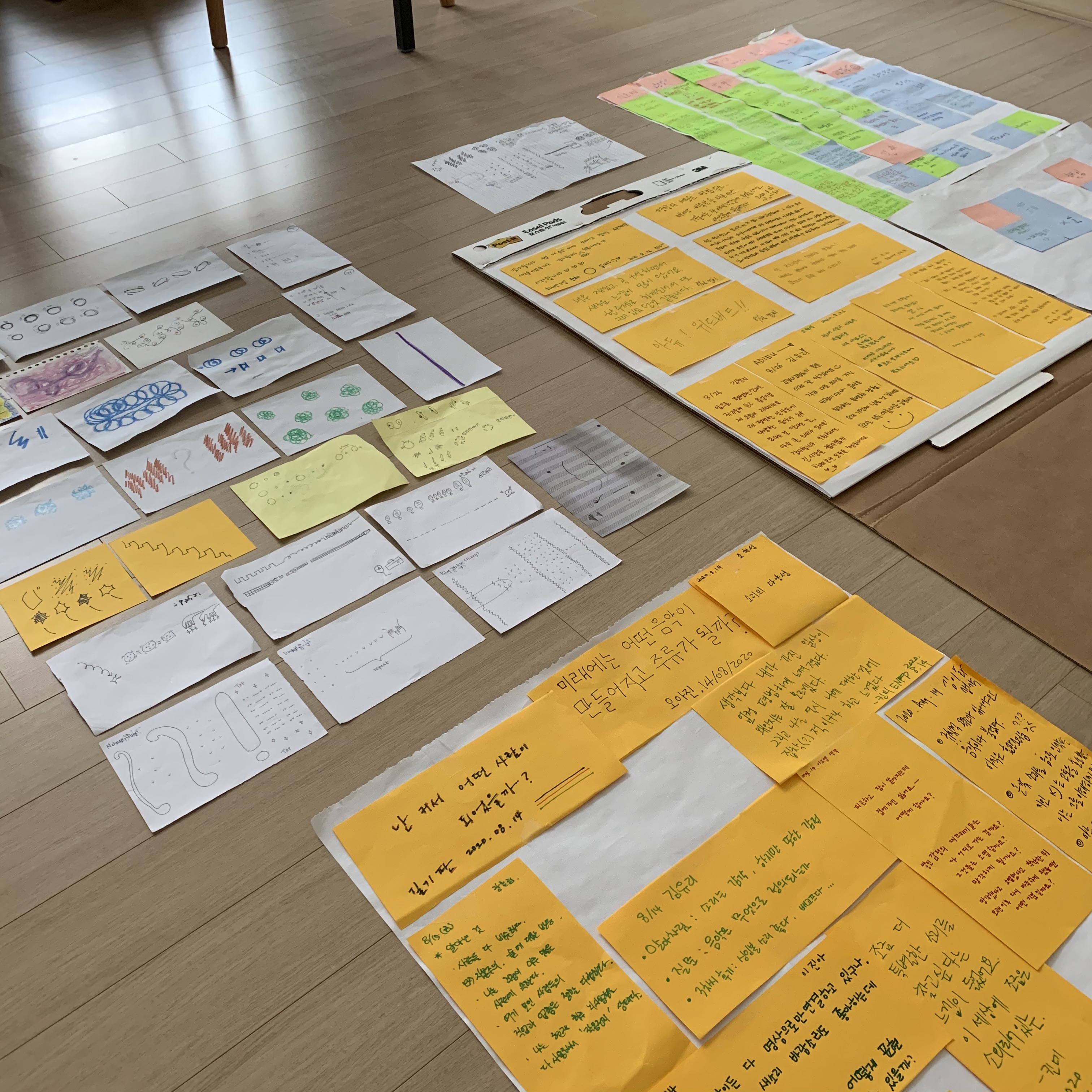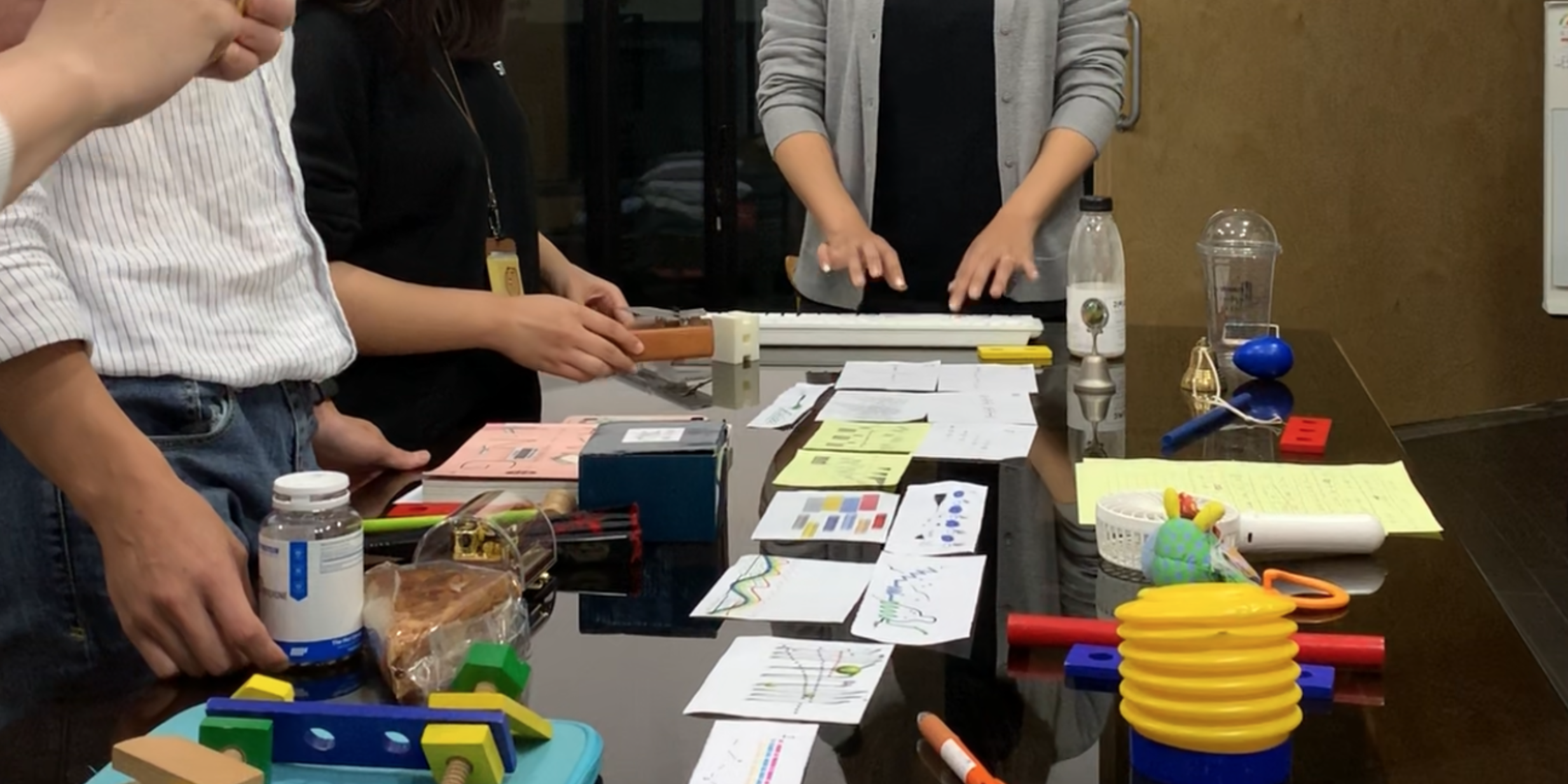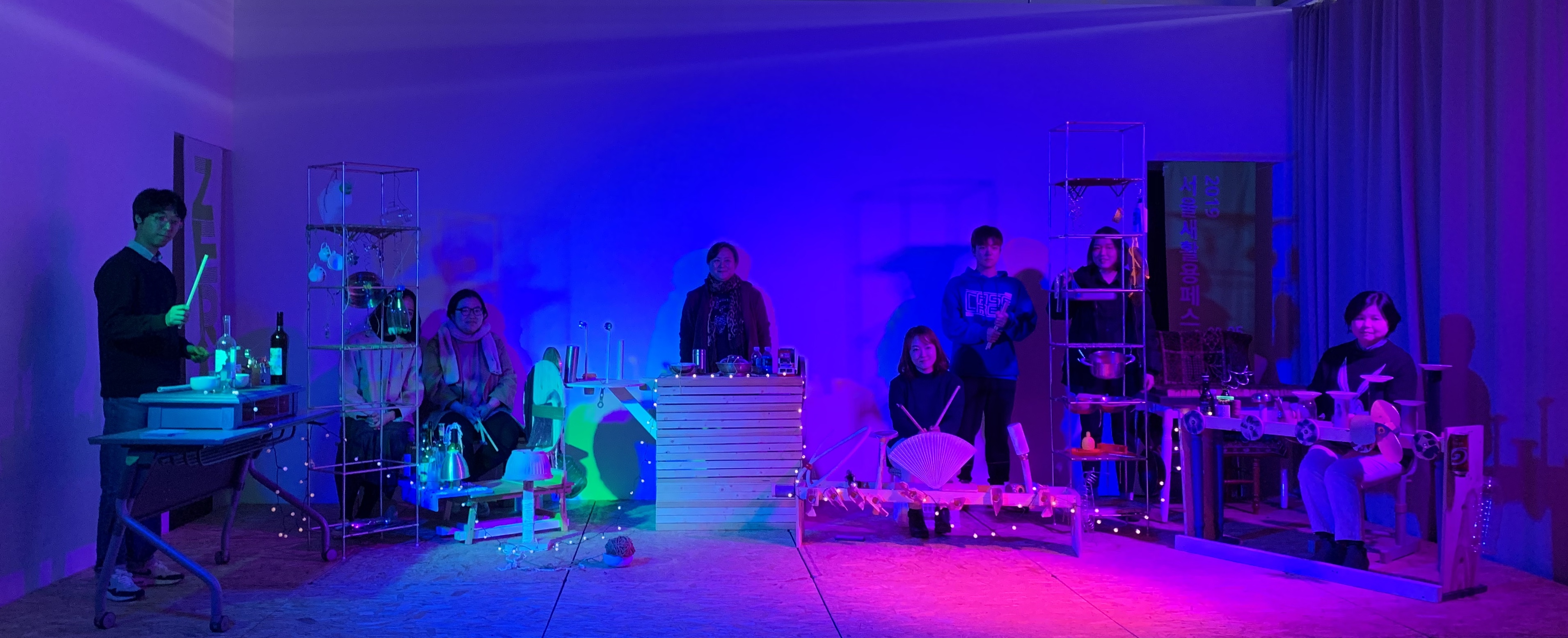Participants create sounds directly using everyday objects (instruments) through a set of rules (free music practice methods, graphic scores, etc.). They then engage in a sonic conversation to create a narrative (music), which is performed on a stage without an audience. Participants place themselves onto sounds devoid of specific meaning, communicate with others, and sense the overall harmony.